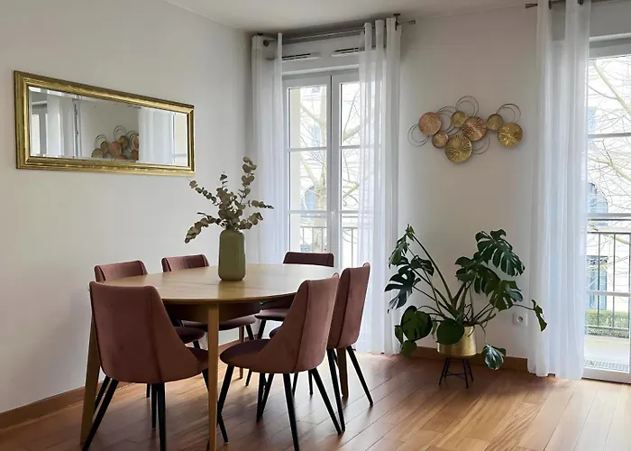 Une cuisine complète est équipée d'un four et de verrerie pour que vous puissiez cuisiner tout seul. Des équipements de cuisine tels qu'une cafetière/théière sont fournis pour offrir aux clients une expérience pratique. Il faut environ 5 minutes à pied pour atteindre L'interprète et les Cañas y Tapas. L'aéroport le plus proche est de Paris-Charles-de-Gaulle, à 45 km d'Appartement 6 personnes - Disneyland Paris, et l'arrêt de bus Lac est à 5 minutes de marche.